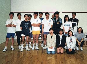 練習は,北大全体で行うのが週1回,土曜日に行われ,個人練習は平日に各自自由にコートのある札幌スカッシュクラブ(南6西15)に行き,行うことができます。藤女子大学,静修女子大学,北海学園大学,武蔵女子短期大学,小樽商科大学と一緒にこのコートを使用しているので,他大学とも仲良くやっています。