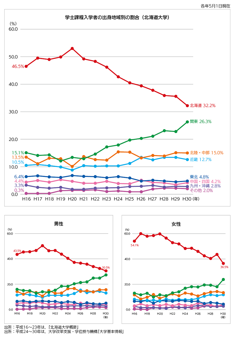 4-2. 学士課程入学者の出身地域別入学状況(推移)