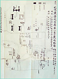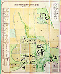 一昨年の2001年末に刊行された『写真集北大125年』を編集した際、かつてキャンパスを彩った建築達は、一体、現在のキャンパスのどこに位置するのかということが編集会議で話題になった。そこで、現在のキャンパス配置図にかつての諸施設や道路を重ねながら、北大の125年(厳密には時計台のある北1条から現キャンパスに移転してからは100年だが)を振り返るという編集方針を採ることになった。幸い戦後に関しては事務局に各年の施設配置図があり、さらにそれを補完する空中写真も附属図書館の倉庫や農場などから入手することができた。戦前については、『札幌農学校一覧』、『東北帝国大学農科大学一覧』、『北海道帝国大学一覧』に添付されている配置図を基礎資料として、事務局保管の『北海道大学所属国有財産沿革』(全12冊および附録2冊)所載の各種配置図や平面図により詳細をつめていった。