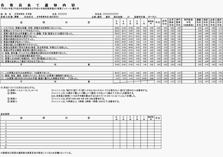 点検・評価 > 自己点検評価 > 点検・評価報告書(H21) > 「学生による授業アンケート」報告書 > 3.各教員あて通知内容