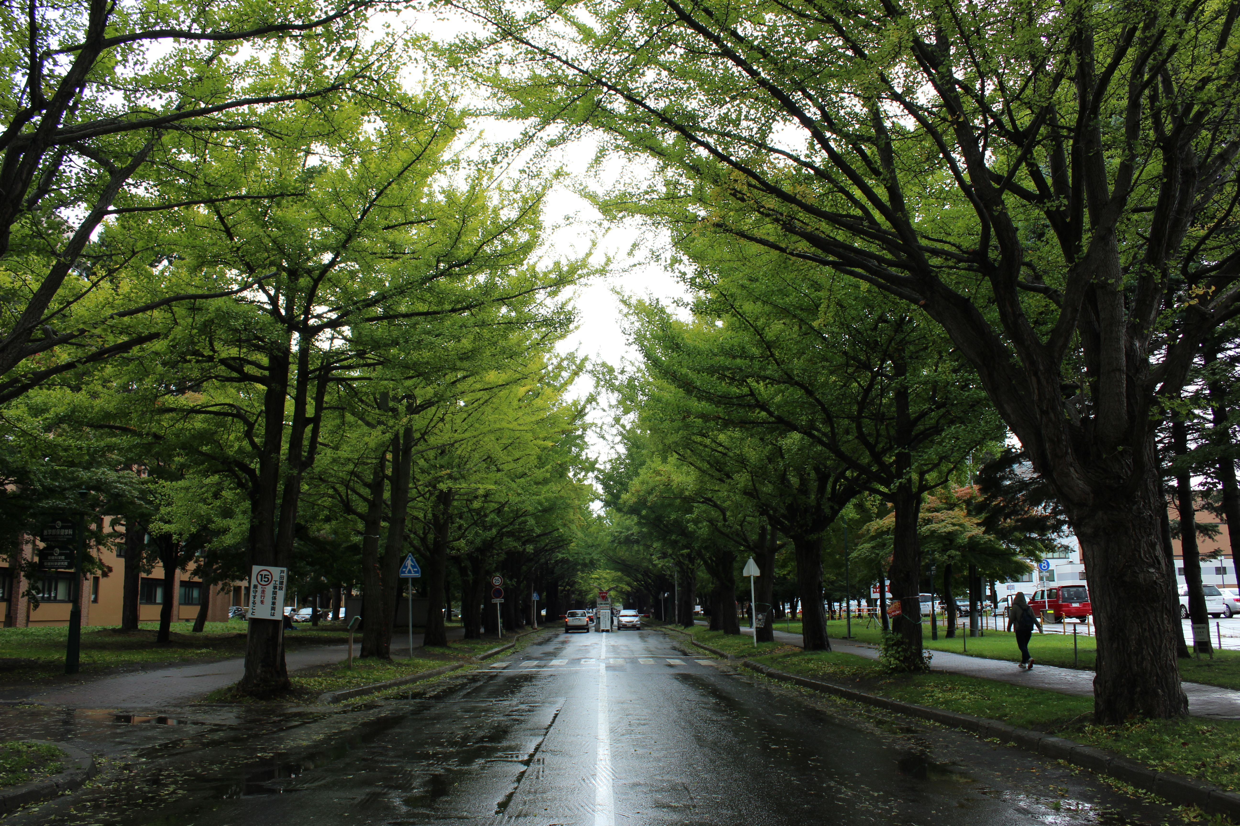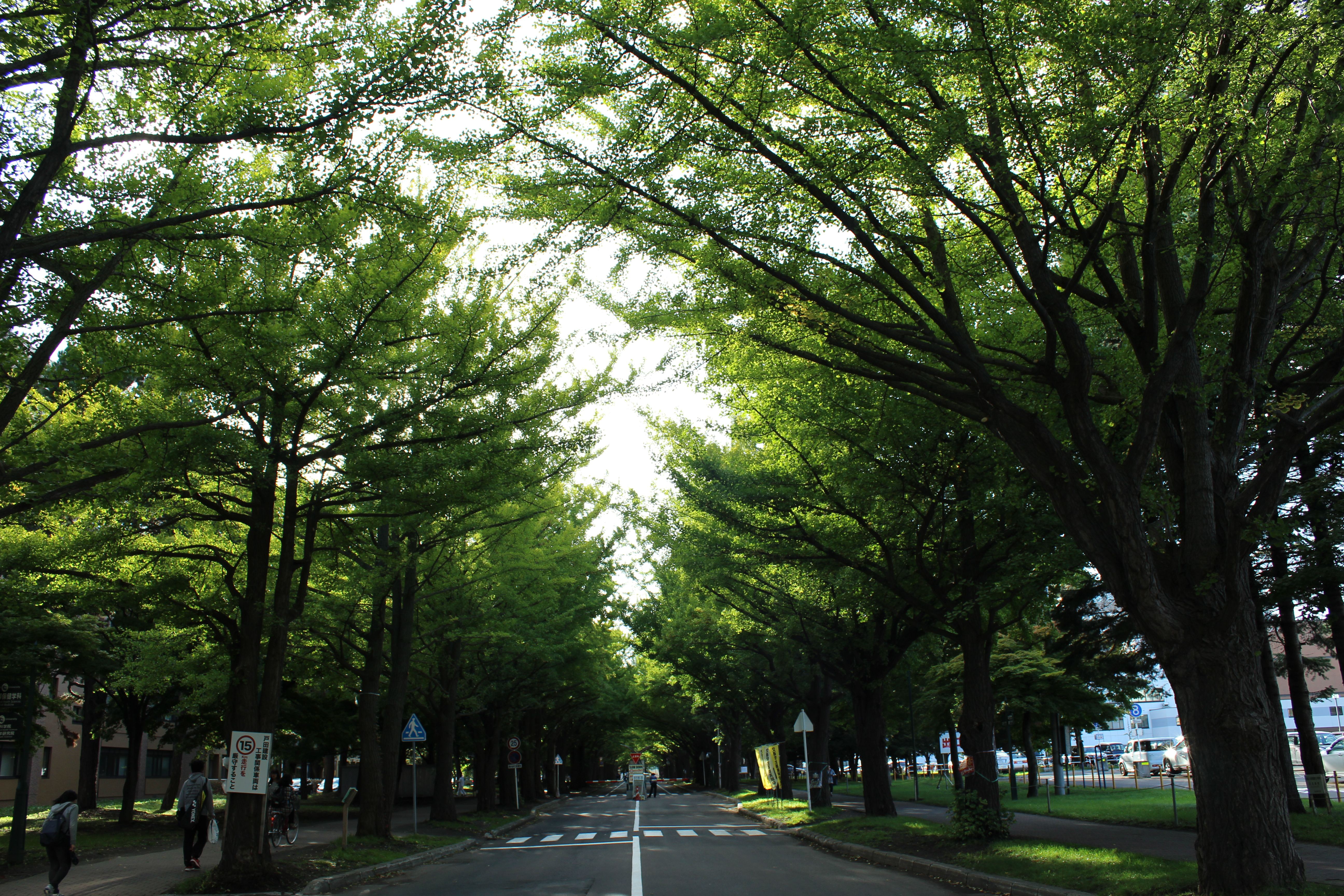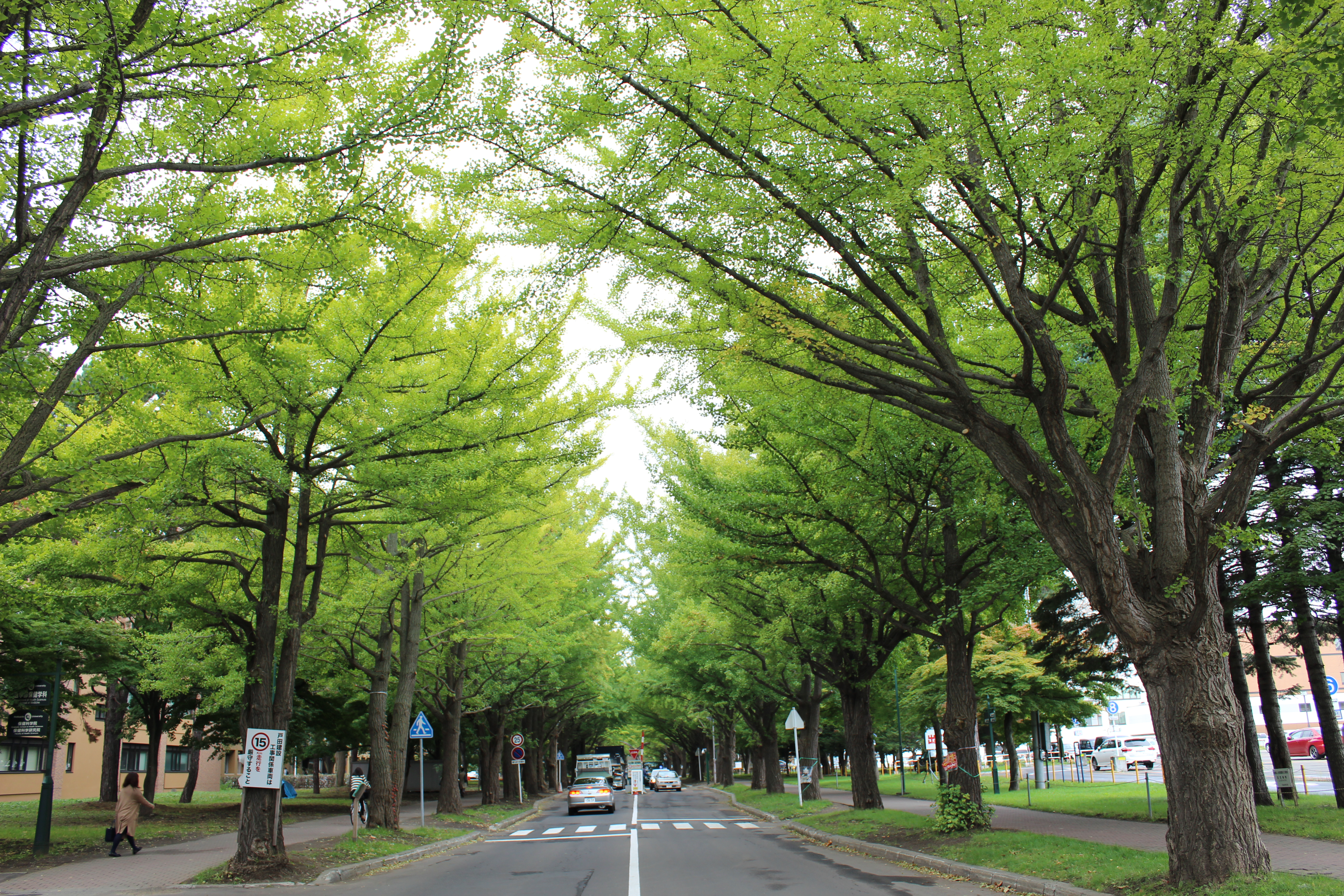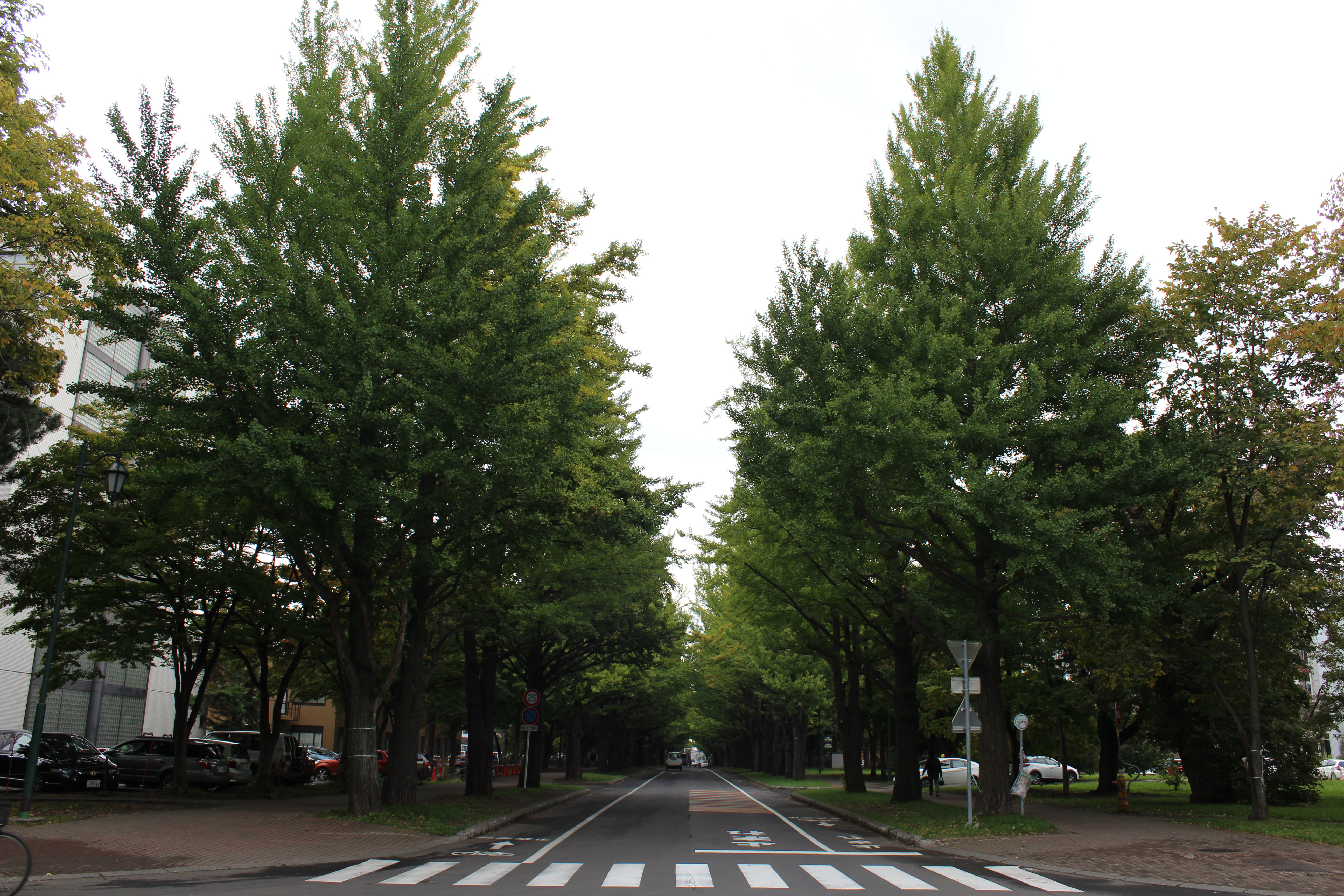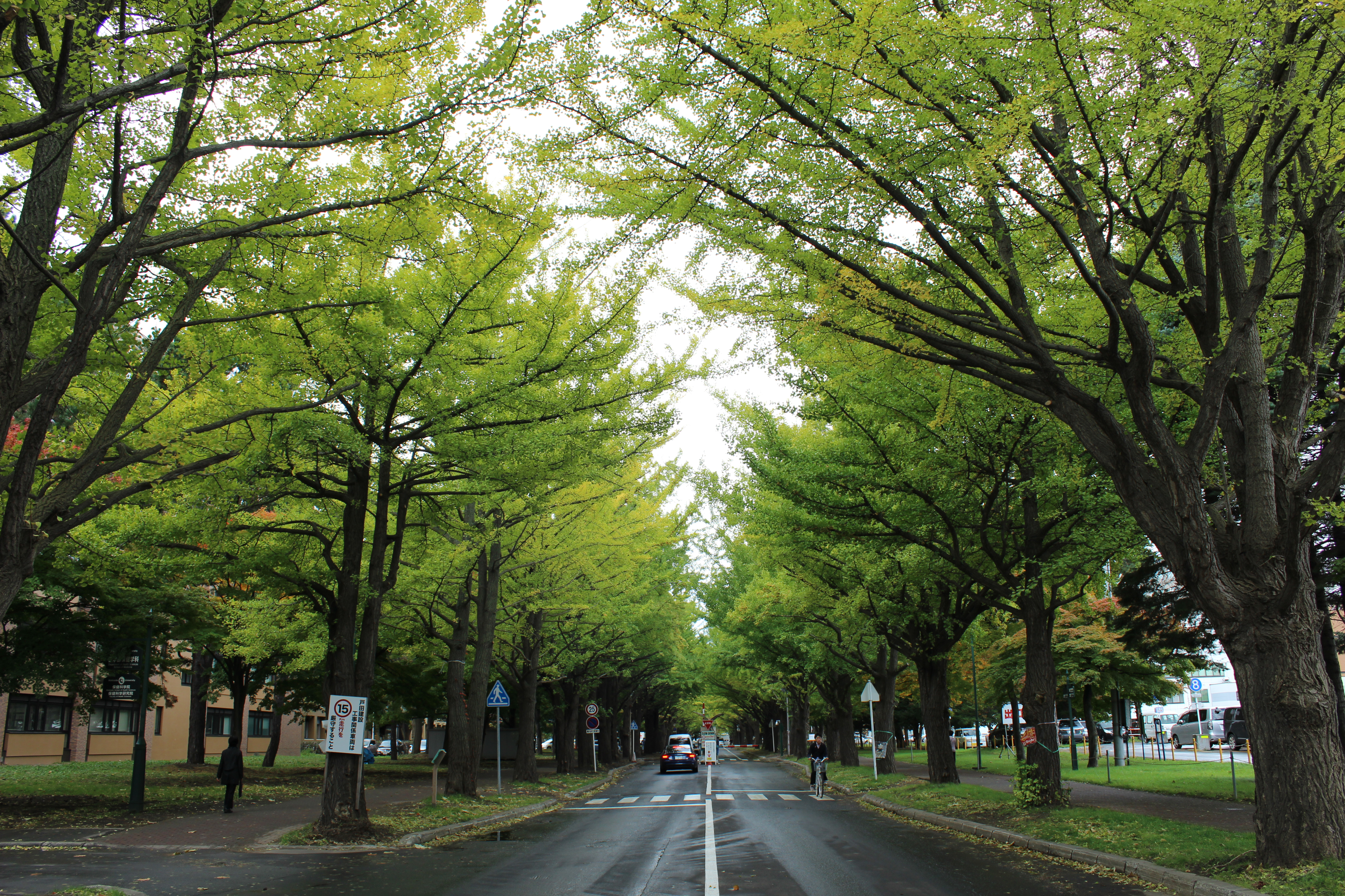 北大構内の北13条通り両側、東西約380メートルにわたる70本のイチョウ並木。例年10月下旬から