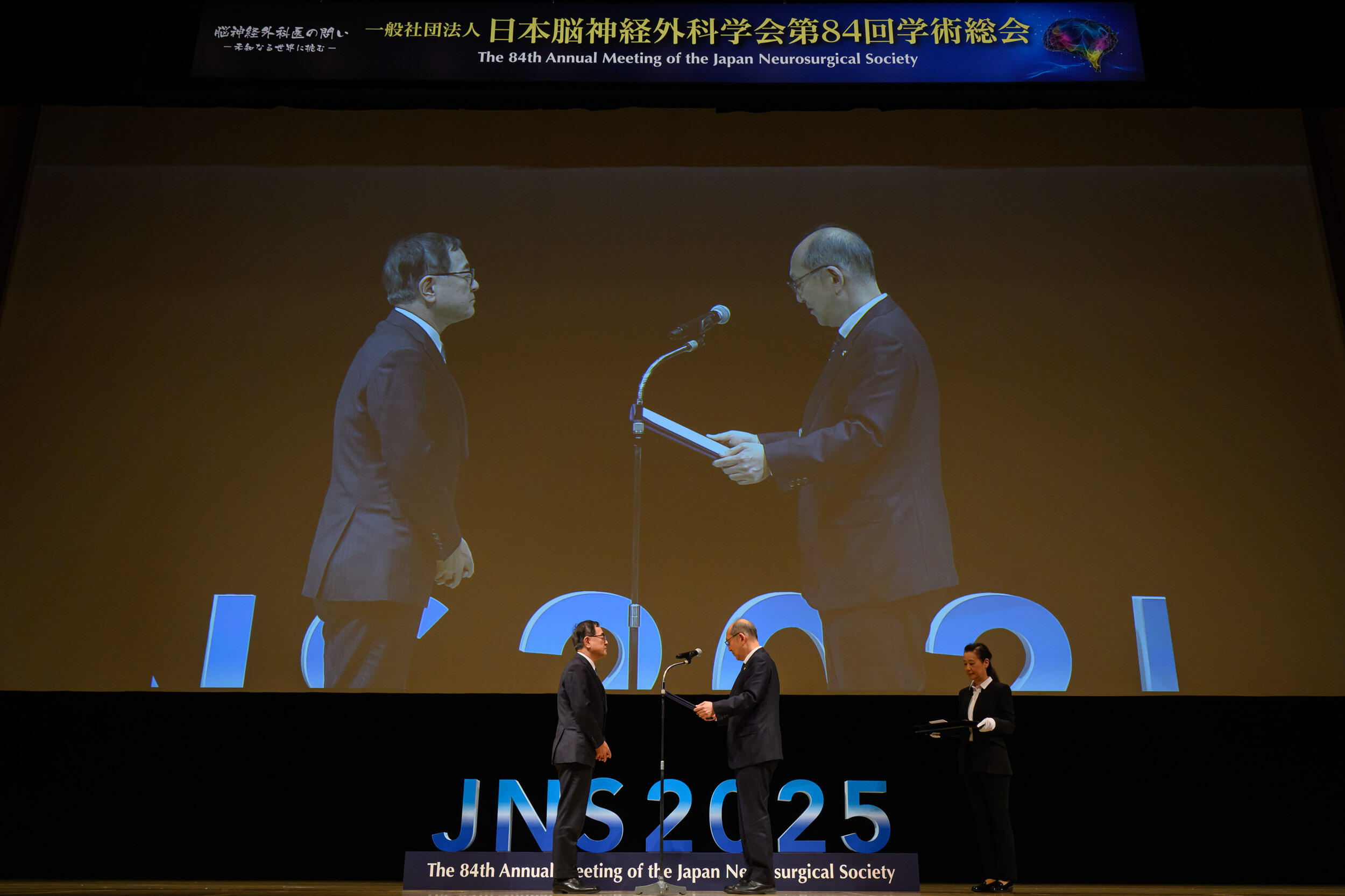 寳金清博総長が、日本脳神経外科学会から脳神経外科学及び同学会への多大な貢献をした個人に贈られる佐野圭司賞を受賞し、2025年10月29日、パシフィコ横浜において授賞式が挙行されました。