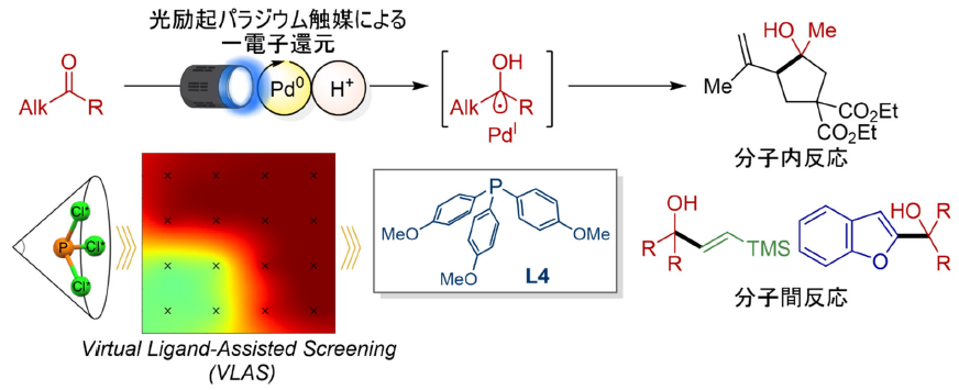 論文名:Virtual-Ligand-Assisted Screening for the Generation of Ketyl Radicals from Alkyl Ketones via Photoexcited Palladium Catalysis(光励起パラジウム触媒を用いたアルキルケトンからのケチルラジカル生成のための仮想リガンド支援スクリーニング)