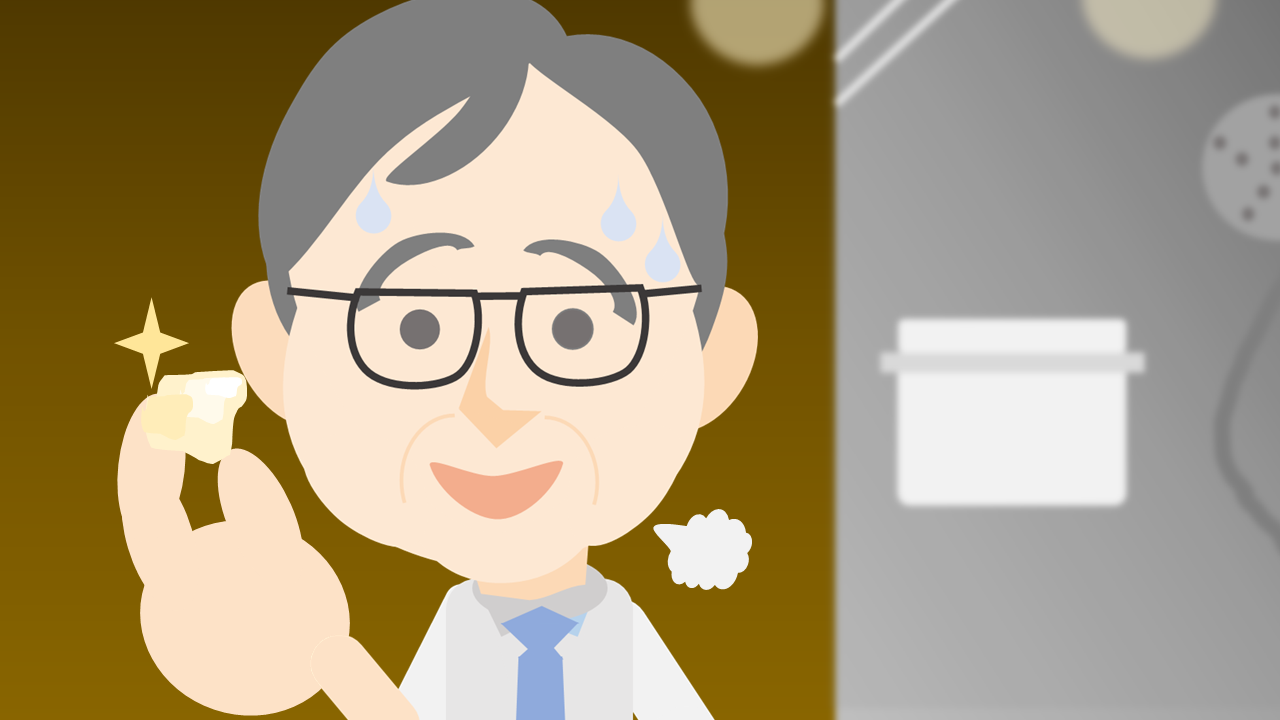 「チャリーーーン!!・・・」と乾いた音を立てて、小さなモノが、便器のホーローに転がった。拾い上げてみれば、小さな宝石のような結石だった。痛みはウソのように消えた。